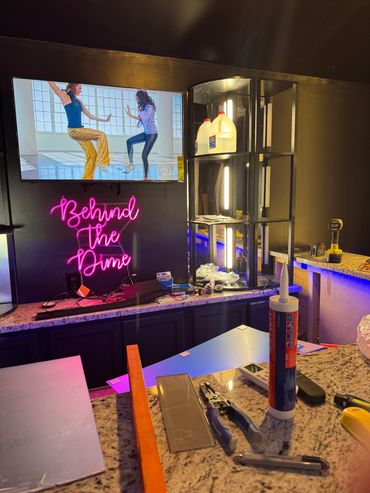 We have completed the major portion of construction The remaining work is cosmetic. In fact on 10/10/ 25 we had a quick soft opening w/ friends and family, Behind the Dime was serving drinks on the Dime /Dime / 2025 . On the 11th we finished the set up and prepared for the nights activities. Man family showed up and showed out, we played JackBox games, Spades and had a ball. I made my first drink the BTD and then the Buidler. I even made a 513.50. Thanks to alll